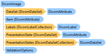 A DicomImage references a DicomDataSet ( DataSet property ), which also contains the attributes, the distinction being that a DicomImage contains pixel data, and is therefore displayable within a DicomViewer control, whereas a DicomDataSet may or may not contain pixel data, and is not displayable. The different properties and methods reflect this difference.