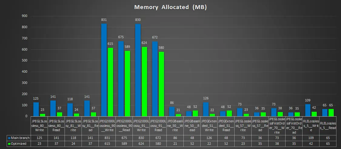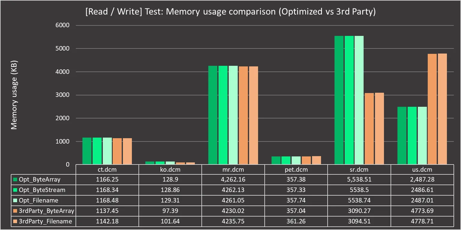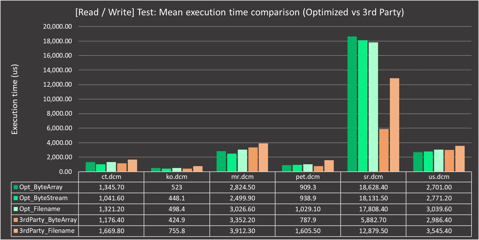 We also tested these optimization changes against another third-party DICOM library available on Nuget to see how they compare:
