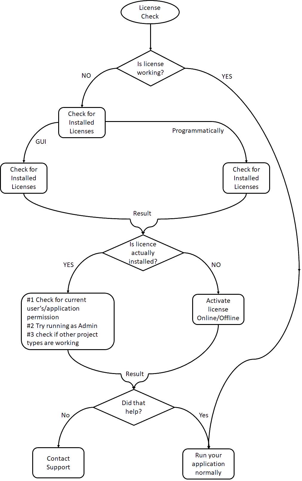 This page describes the initial steps you could follow to troubleshoot a licensing problem. The flowchart given below is a simple diagnostic route to identifying the actual problem.
